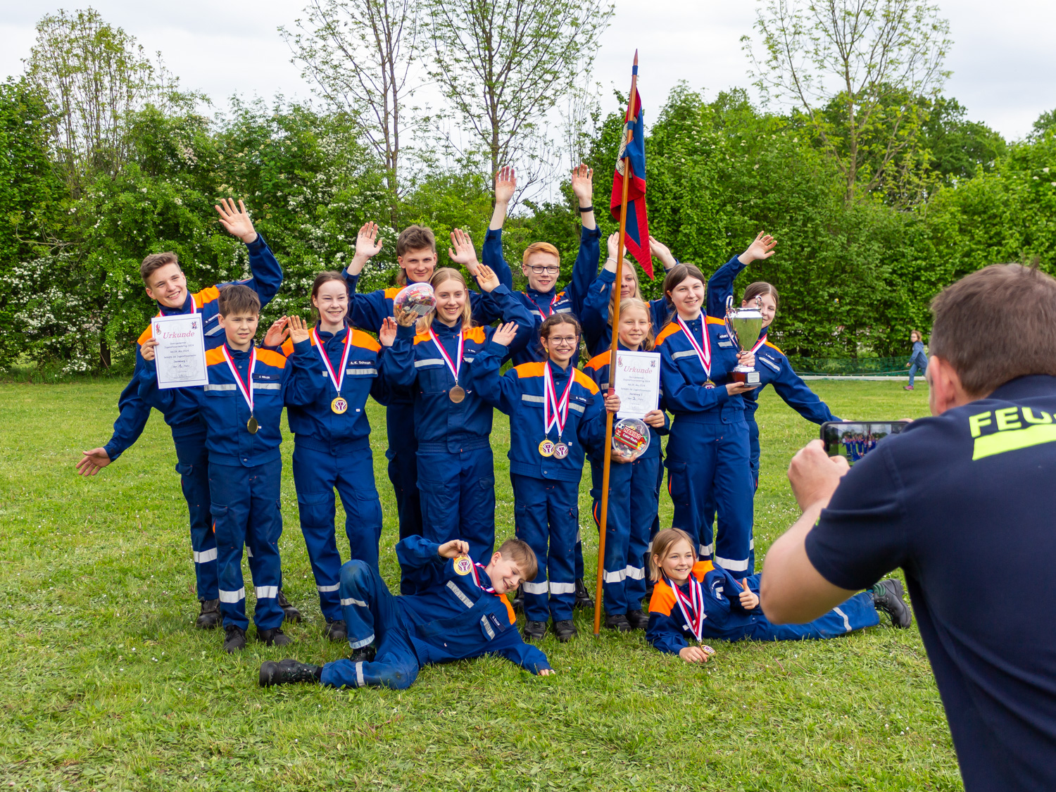 Am Samstag den 04.05.24 war in Trelde der Gemeindejugendfeuerwehrtag. Auch unsere Samtgemeinde hat mit 4 Gruppen am Wettbewerb teilgenommen. Eine Gruppe besteht aus 9 Jugendlichen die zwei verschiedenen Übungen absolvieren müssen. Diese beinhalten einmal einen sogenannten Dreiteiligen Löschangriff und eine Art Staffellauf mit verschiedenen Stationen wie das werfen eines Leinenbeutels und das einbinden eines Strahlrohrs. Alle Jugendlichen haben ihr bestes gegeben!